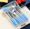 tableware spoon /fork/ knife dinnerware/kitchenware No.061303 Whats in the Box 4 place settings.Each place setting consists of: dinner fork; dinner knife; soup spoon; teaspoon.16 pieces total.Product Description 16piece. Durable solid stainless steel, high quality plastic handles. Color fast. Dishwasher safe.SENSE enhances your lifestyle with a casual touch. Stainless steel, strong plastic handles, tableware perfect for everyday dining or entertaining. SENSE is a professional manufacturer in kitchenwares scope, our product ranges : knifeset,scissor,kitchentools,gadget,BBQ,pocket knife , multi--tools, can opener , bar tools,nylon soup ladle etc.. Please feel free to contact us if you need. We are looking forward to cooperate with you.